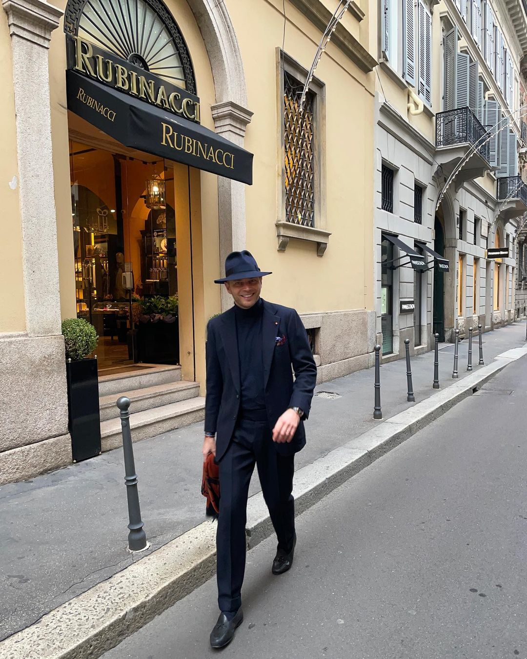 Cũng với một vibe vui tươi đầy năng lượng như Chad Park, Luca mang nhiều sắc màu hơn trên trang cá nhân của mình cũng như cho thương hiệu Rubinacci (với định vị “The modern voice of Neapolitan tailoring since 1932”). Chẳng tự nhiên nói, với suit Anh quốc ta thấy nhiều phần quy chuẩn và “cứng nhắc”, thì với suit Ý lại bay bổng nhẹ nhàng, phóng khoáng hơn rất nhiều. Nhìn cái cách mà Luca Rubinacci diện trang phục mỗi ngày, ta sẽ rõ ràng được sự enjoy của một thú chơi khi mà chẳng cần phải cố gắng để chứng minh mình trong cuộc chơi ấy nữa.