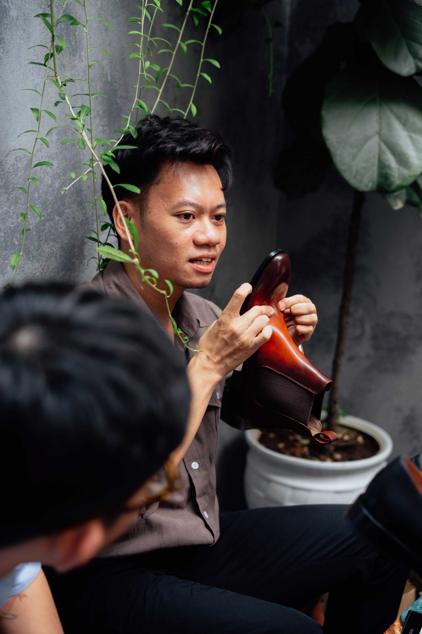 Trong buổi sáng đầu thu êm dịu của Hà Nội, chào đón các vị khách tới tham dự sự kiện là host Khánh Sartorial – Sartorial Vietnam và Mr. Minh Dũng – chủ thương hiệu CNES Shoemaker. Host Khánh Sartorial đặt ra câu hỏi mở đầu buổi trò chuyện: “Thế nào là một đôi giày tốt?”