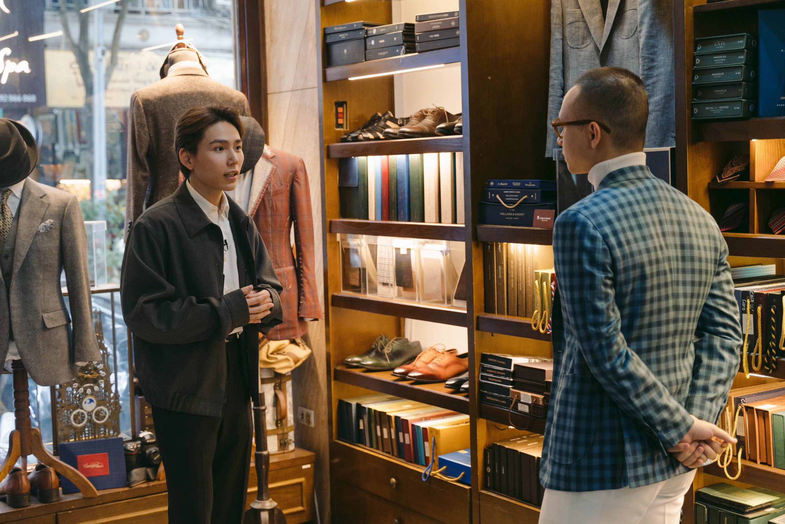 Kinh nghiệm của nhiều người chơi Âu phục cổ điển lâu năm cho hay, quá trình lựa chọn may đo bộ suit đầu tiên cần tiêu tốn nhiều thời gian. KIENPHAM chia sẻ chút bối rối với bộ suit đầu tiên của mình, dù đã có nhiều kiến thức và trải nghiệm trong lĩnh vực thời trang. Anh vẫn cần thêm tư vấn về lựa chọn màu sắc, cũng như phong cách suit phù hợp với mục đích sử dụng. Để giúp KIENPHAM “gỡ rối”, Mr. Phạm Anh Vũ – đại diện thương hiệu Carlo Pham – đã trực tiếp lắng nghe và giúp Kiên từng bước “định hình” bộ suit của mình.